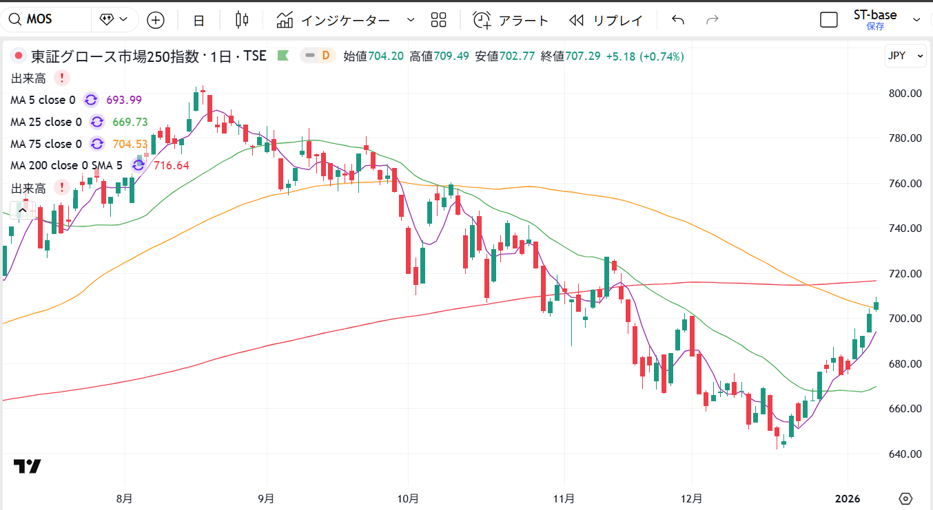グロース指数についても、大きく崩れるリスクは限定的で、テーマ循環を伴いながらも底堅い推移が期待される局面です。今後は指数の動きだけに左右されるのではなく、個別銘柄の需給や市場参加者の動きを丁寧に捉えることで、投資機会を見出しやすい環境が続くと見ています。