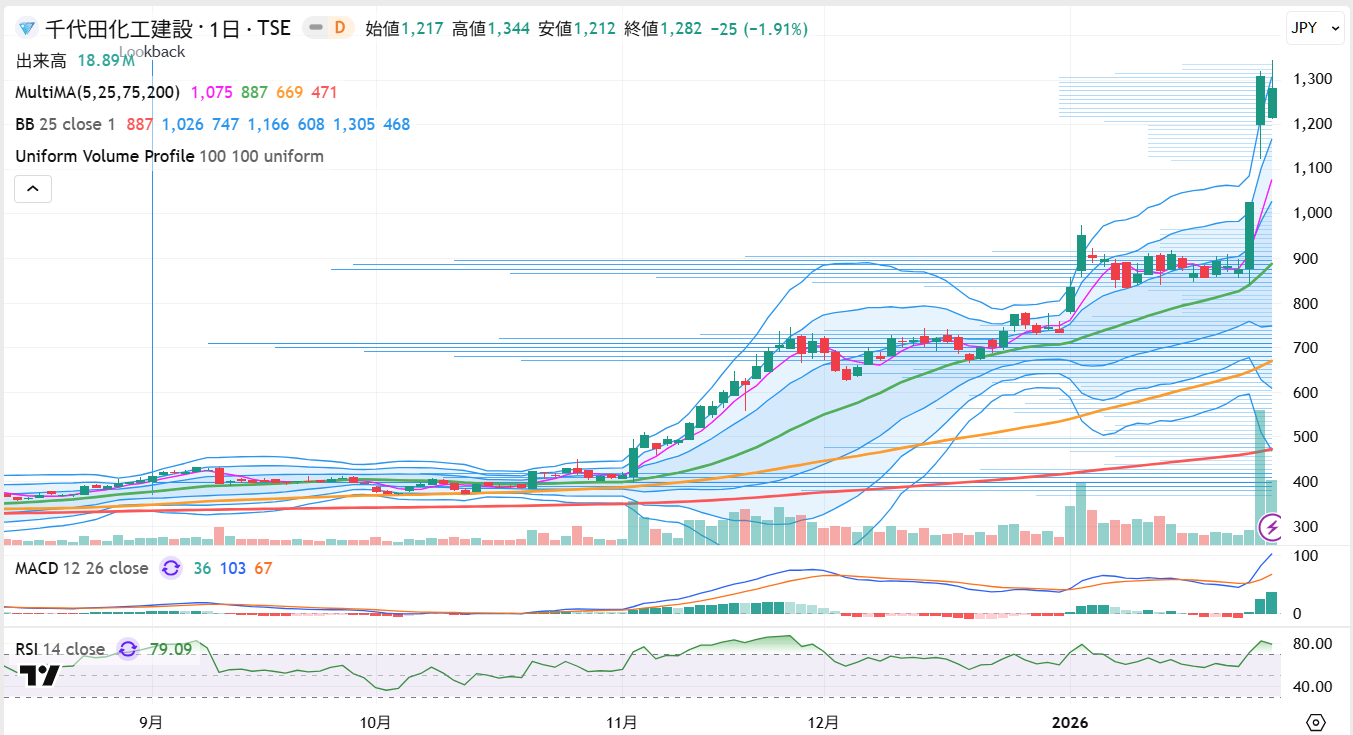 2026年1月30日の終値は1282円(-25円)となっています