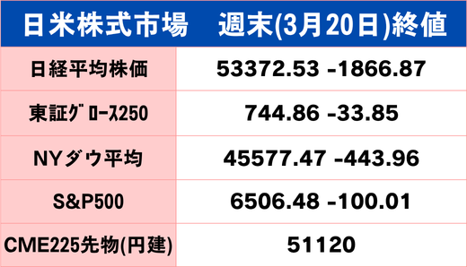 さらに中東情勢は依然として緊迫した状態が続き、供給不安を背景に原油価格は再び100ドル台を回復するなど、インフレ再燃への警戒感も重なっています。複数の不安材料が同時に顕在化したことで、投資家心理は「押し目買い」から「戻り売り」へと移行しつつあり、週末の値動きは弱気転換を象徴する形と言えます。今後は、利上げ観測が現実味を帯びるかどうかが最大の分岐点となり、金利動向次第で株式市場の調整が一段と深まる可能性があります。日本株も同様ですが、先行きは「中東情勢」次第という点はこれまでと変わりません。